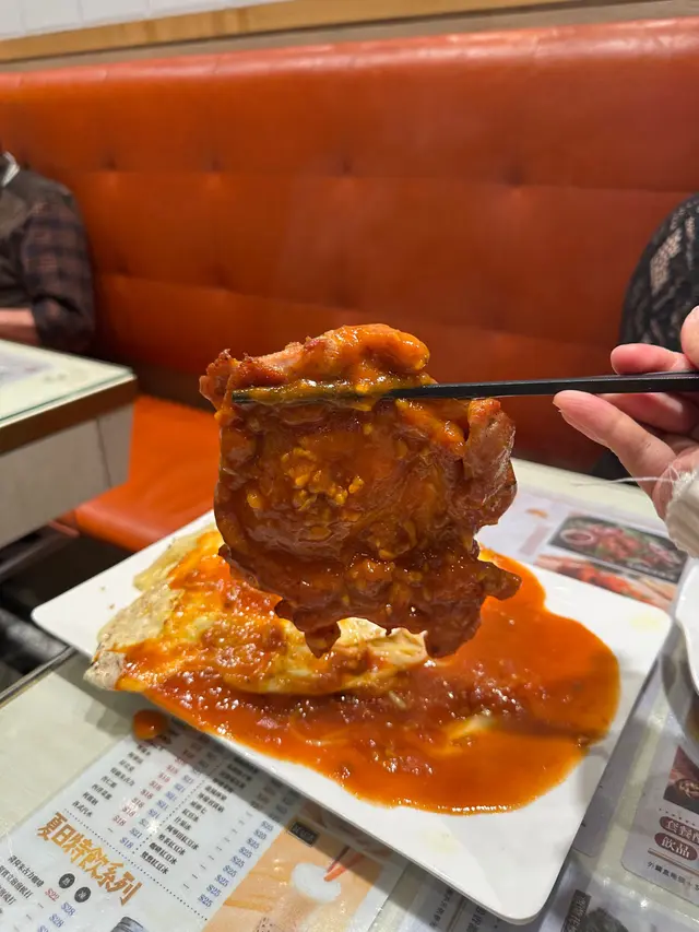 意粉和雞扒通常被蒜蓉醬汁充分包裹,每一口都味道飽滿!雞扒成塊面咁大塊咬落好嫩口~雞蛋做點綴,增加清爽感平衡油膩~份量好足夠!