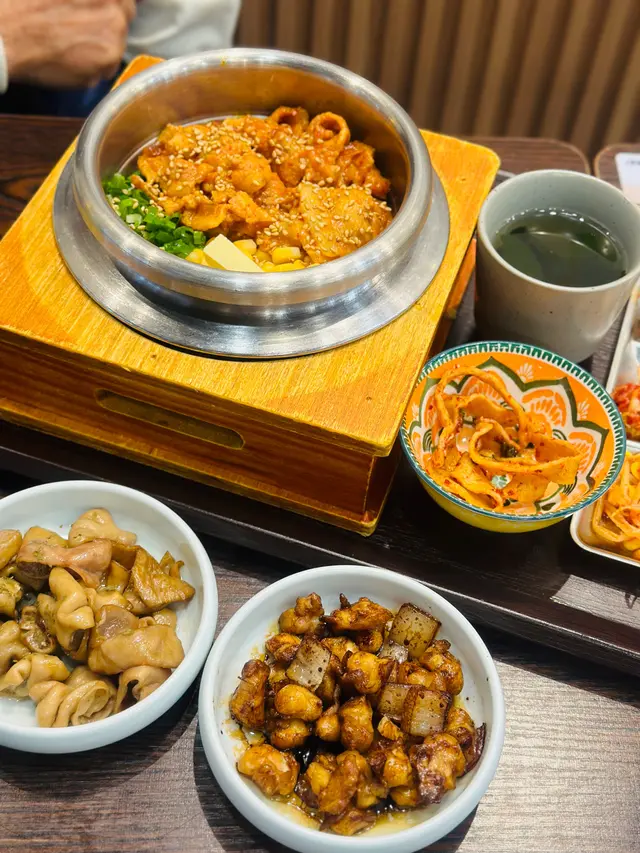五花肥瘦均勻唔會油膩,加埋牛油、甜粟米同韓式辣醬撈勻,香氣撲鼻~ 最驚喜係食到底嘅金黃飯焦,脆卜卜吸晒醬汁精華,口感層次直接拉滿!