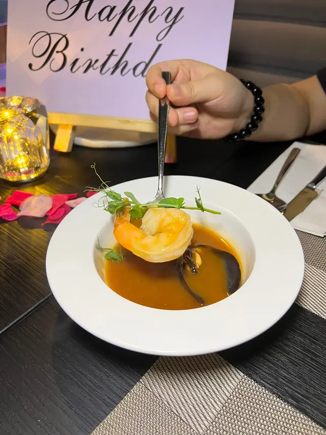 有蝦和青口,湯底充滿濃郁的海鮮味🦐