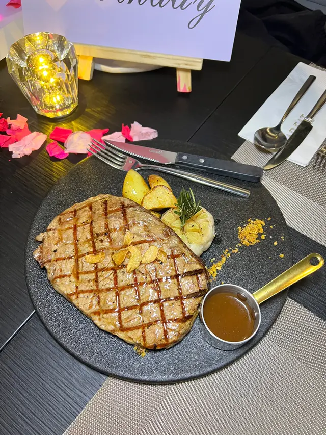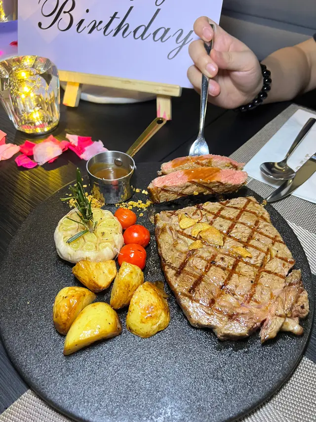 肉汁滿滿的肉眼扒有著清晰格紋,賣相吸引,肉質軟嫩,吃著很滿足🥩🫶🏻 伴碟的烤蒜軟軟甜甜不要錯過🧄