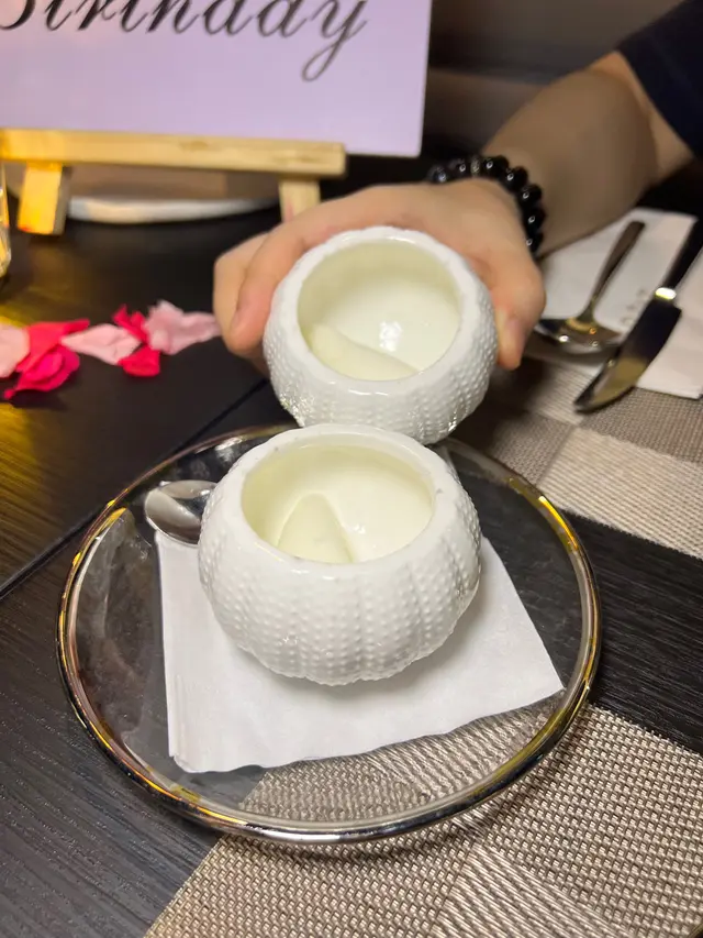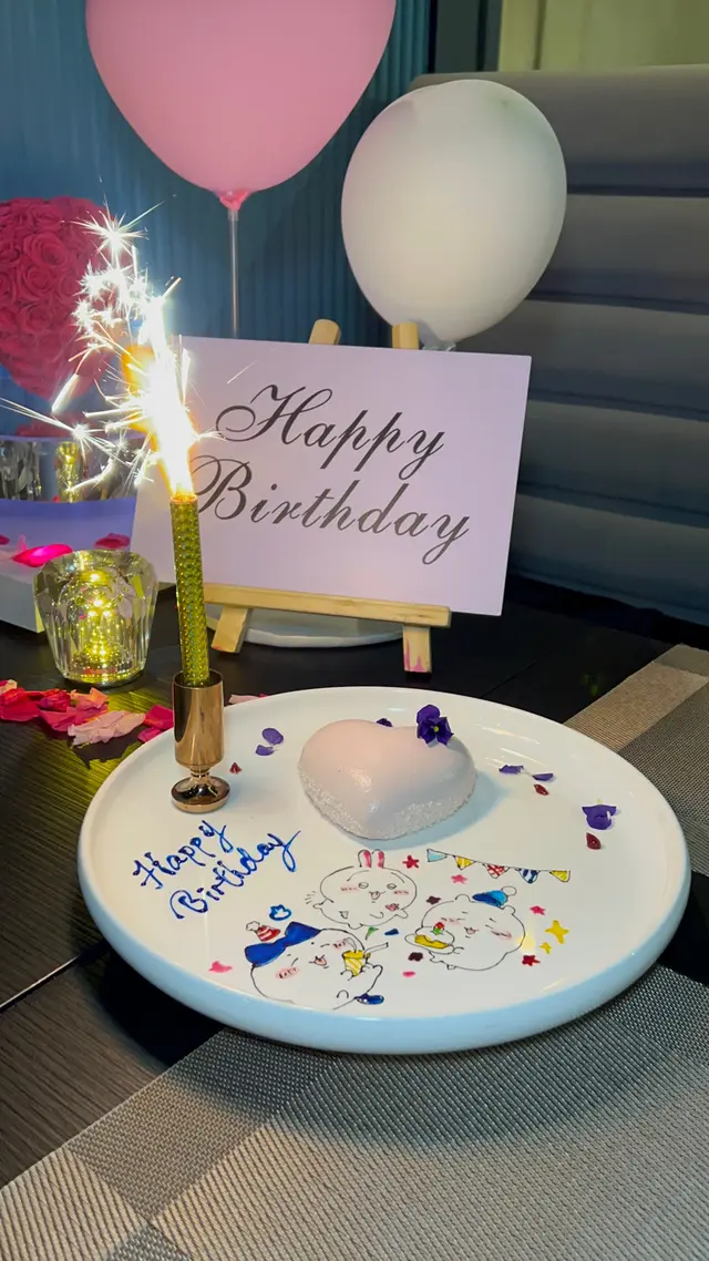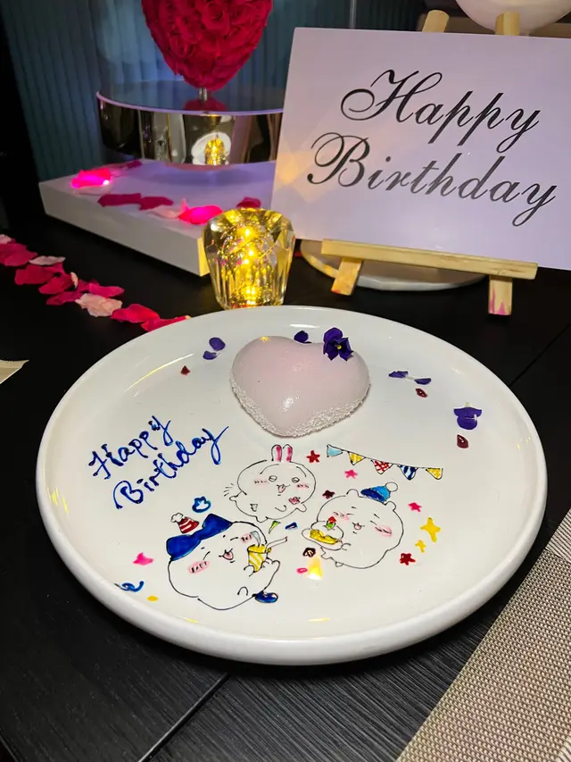 甜品的畫碟圖案是訂位時提前跟餐廳說好,真的很可愛,瘋狂的拍了很多照片😻📸 心形的伯爵茶蛋糕不過甜🎂