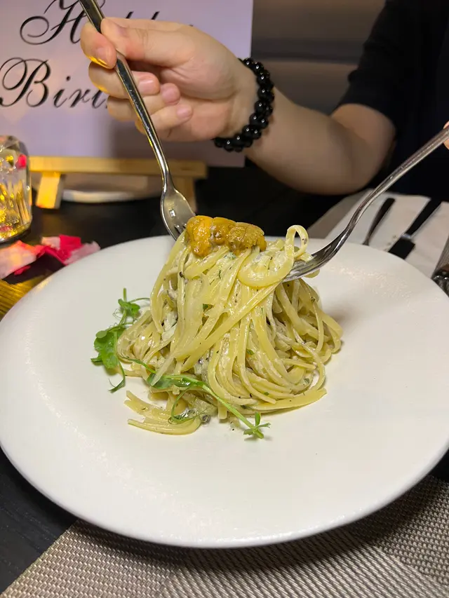 最頂部鋪了一份海膽,扁意粉裹滿了醬汁,充滿黑松露香味🍝