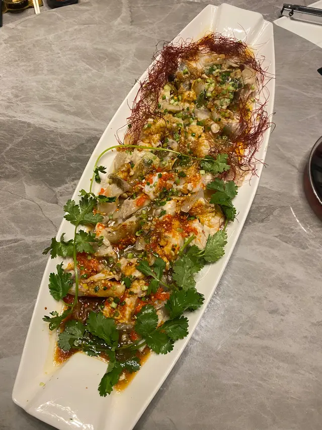 這是玩味比較重的一道菜,因為要用揼子敲碎麵條來吃的,不過他調的醬料比較清淡,不太合我口味,所以我就沒有吃很多了。