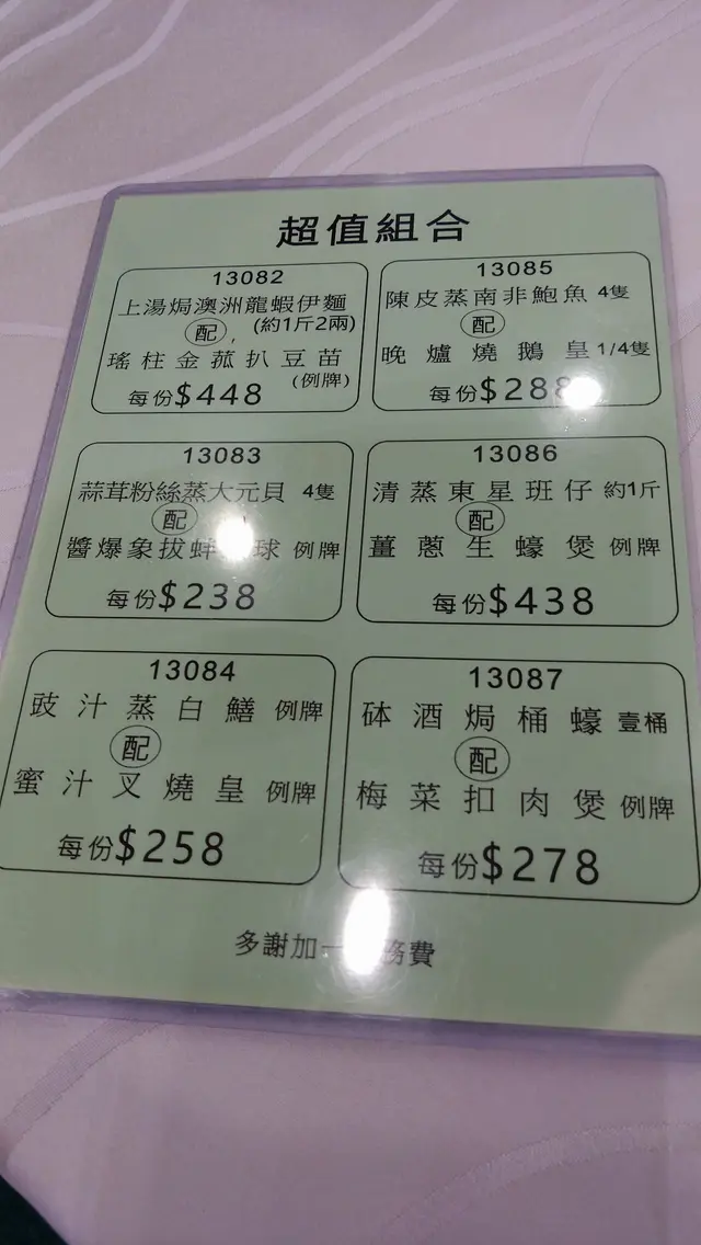 包括:小菜2款、海鮮1款、燒味1款、湯1款
