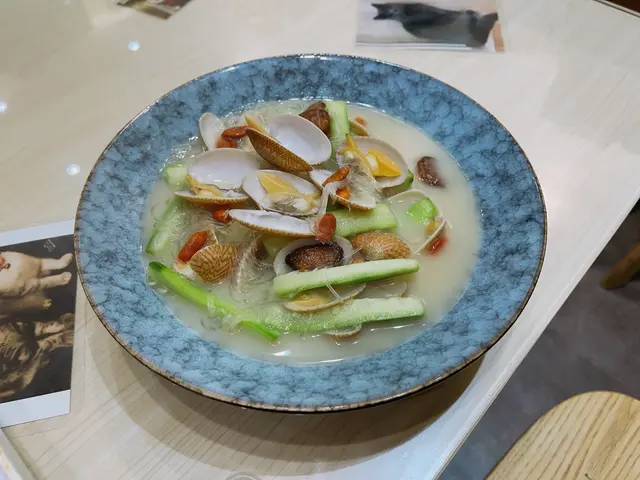 胡椒湯底煮蜆,蜆肉鮮甜、湯底溫和,仲有大量瓜肉同粉絲,健康又美味,仲有啲蒜頭襯香個湯底