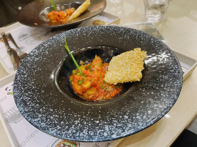 跟住就係大蝦,好鬼大條又多肉,完全俾特製椒芡醬覆蓋住,但唔會太蝦,好惹味又吊到蝦嘅鮮爽,脆米餅索晒啲汁,點嚟食超好味
