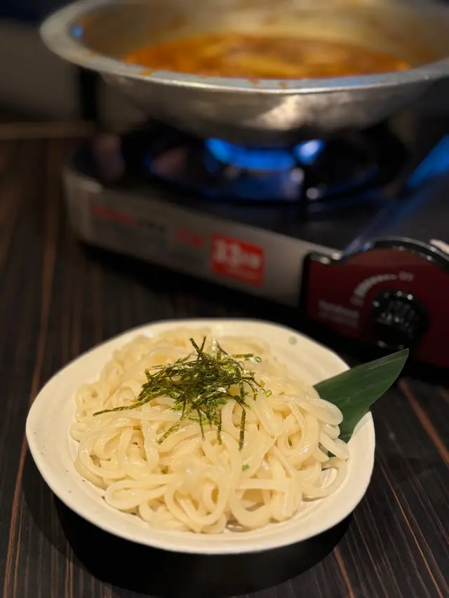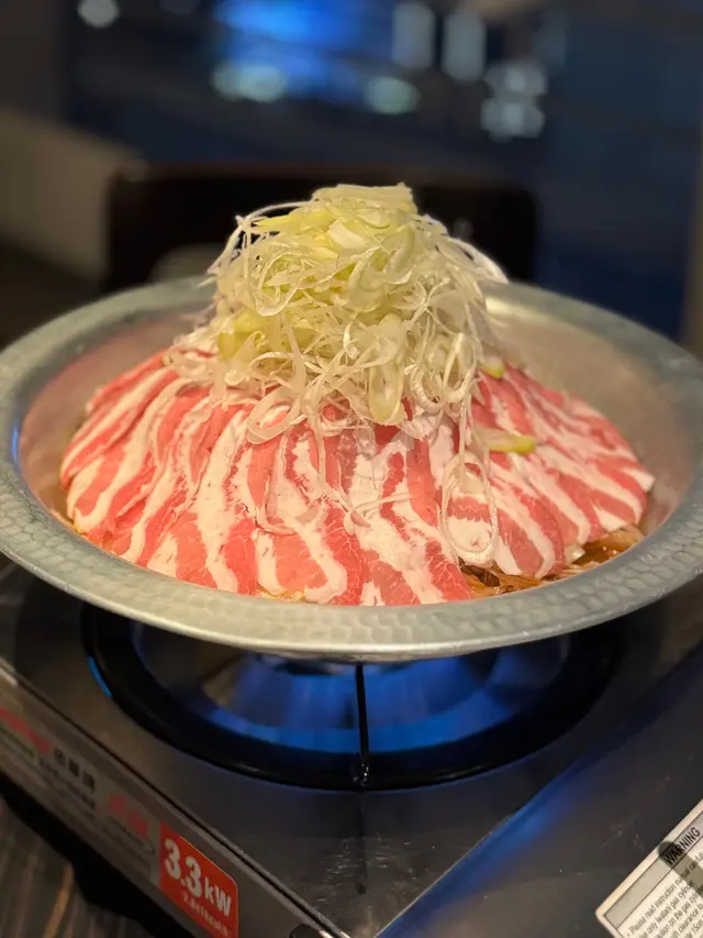 套餐包有一個鍋品,叫火山鍋嘅原因係因為模仿熊本既阿蘇火山,除咗豬肉片,底下仲有唔少配菜包括有 芽菜,雜菇,腐皮等等。成個鍋鋪滿豚肉好 澎湃,湯底用上高湯+ 辣味噌,微辣而香濃,最後加埋烏冬落去煮,食落入味又滿足