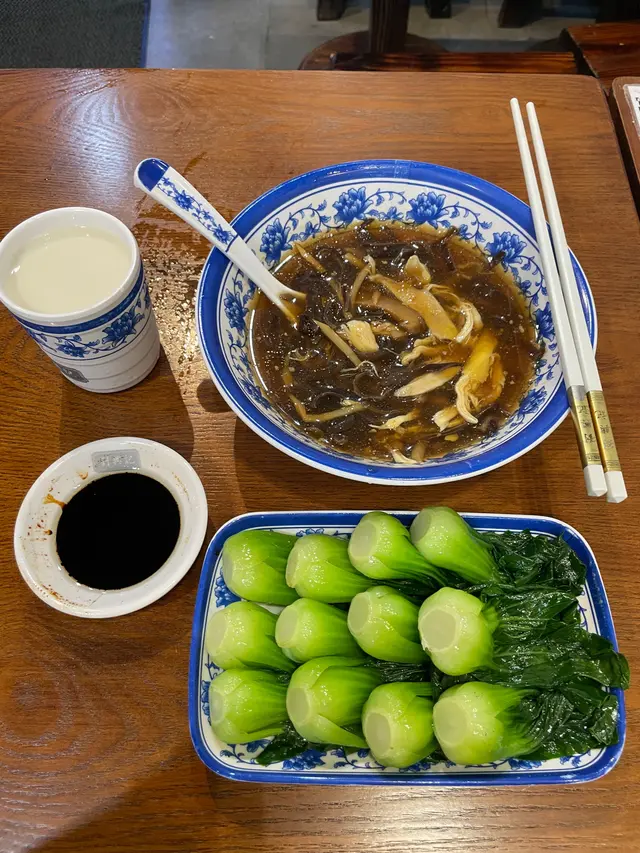 下午茶黎食簡單食左幾個爆汁生煎包,酸辣湯酸辣平衡,雞絲細嫩,木耳竹筍添口感。小棠菜好嫩,豆漿又可以任飲,健康又飽既一餐💯