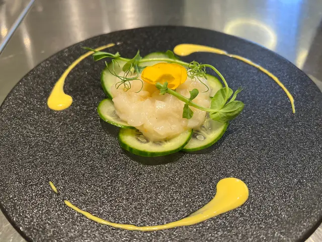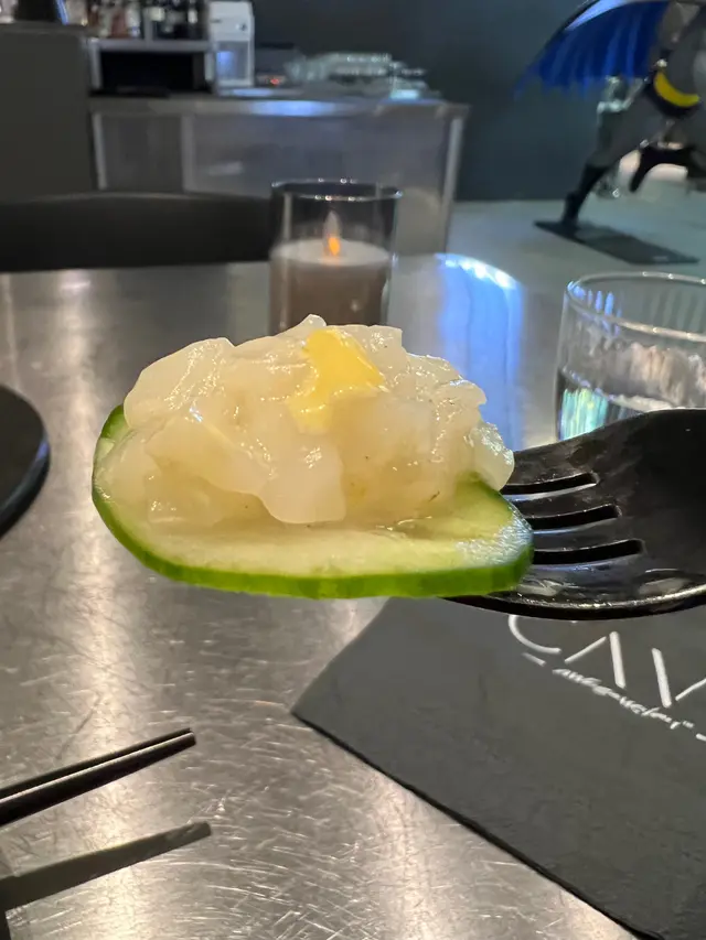 每片青瓜上面擺滿帶子他他,一啖擺落口,好正!