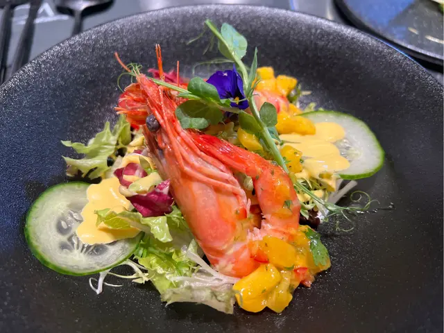 仲嗌咗一個鮮芒果莎莎海蝦沙律,佢嘅醬汁特別,