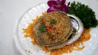鮮鮑魚略顯金黃,只輕蘸粉漿炸起,表層酥脆纖細,沒有滿口炸皮油淋淋的問題