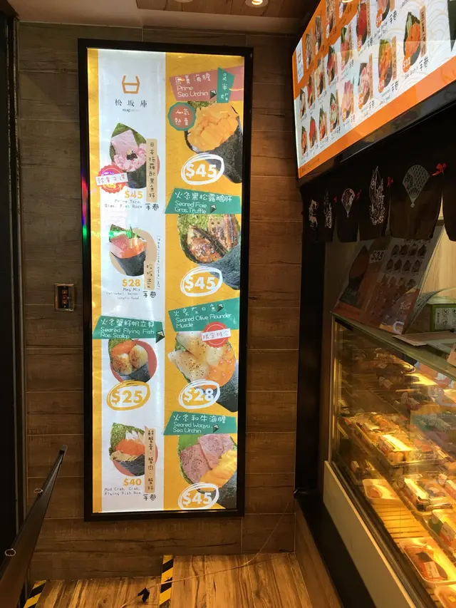 手卷嘅款式都幾多,而且價錢合理,定價 $10-45。有四款比較矜貴嘅海膽、黑松露鵝肝、和牛海膽、拖羅原價係 $45,只要買任何飲品,都可以優惠價 $35換購,不過我睇大部分飲品都唔平,十幾蚊。
