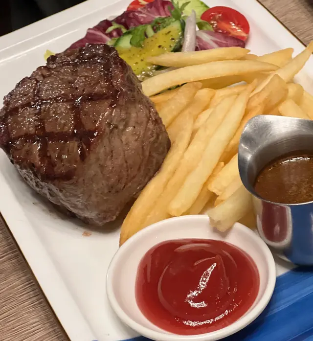牛柳medium rarer ,一d都唔鞋唔靭,嫩同多汁,但係就冇乜牛味!可能肉眼扒嘅牛味會重啲。