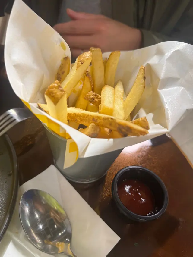 我嘗試了薑黃海南雞飯,米飯金黃色,散發著迷人的香氣,搭配上新鮮的生菜和清爽的醬汁,口感絕佳,更令人驚喜的是湯品完全不含味精,讓味道更加自然。鰻魚定食外脆內嫩,恰到好處,炸蠔及鰻魚雖然係素食,但幾可亂真,讓人回味無窮。此外,他們的薯條也是一絕,酥脆可口,適合做配搭或小食。
