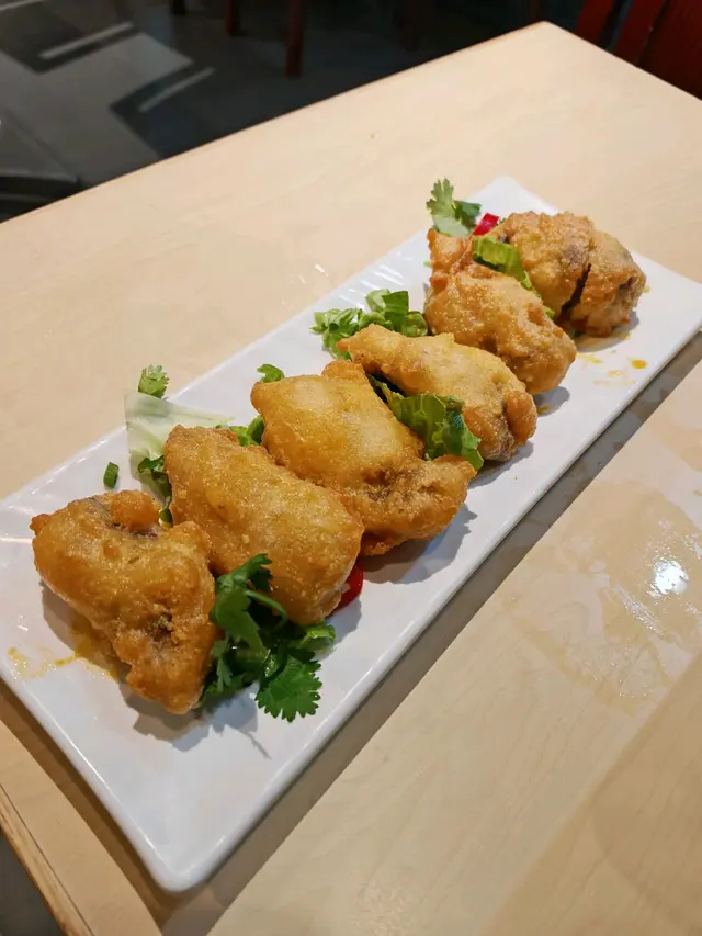 牛腩炸得非常香脆, 咬落去有鹹蛋黃嘅味道, 用鹹蛋黃包住牛腩來炸, 出來嘅效果更加好食, 因為除咗有牛腩嘅牛肉香同奶香, 還帶有鹹蛋黃嘅鹹香味道, 更加有層次。