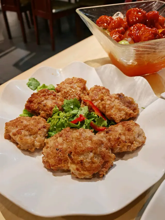 蓮藕餅炸得非常香脆, 入口啖啖肉, 用上豬肉同埋蓮藕來一齊炸, 口感更加豐富。