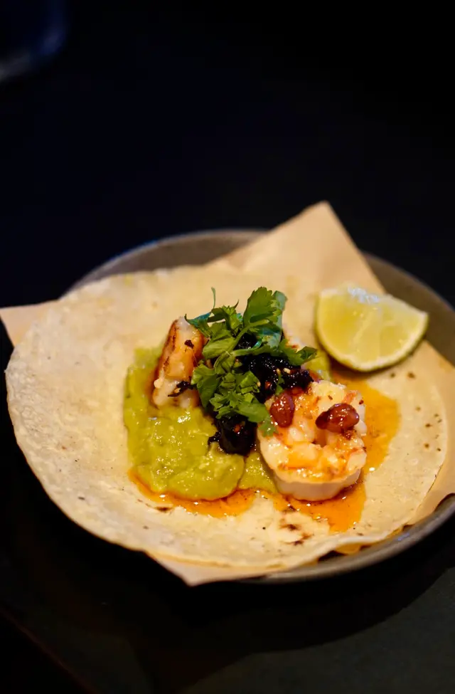 Shrimp & Guacamole — 鲜弹的虾仁和牛油果泥一般都是不出错的搭配,但恰恰翻车在酱汁,竟然不是我以为的salsa,而是老干妈一样的辣椒油,整个taco的画风瞬间油腻起来。饼皮就跟受潮了一样干瘪,嚼劲无。