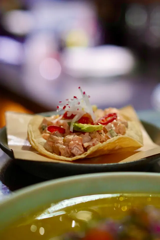 Market Fish Ceviche — 柚子柠檬汁腌鱼生好酸,还是平铺直叙的尖酸,柚子风味没什么存在感,腰果太大颗,虽然口感香脆,但跟生鱼片的柔嫩完全调不到一个频道。