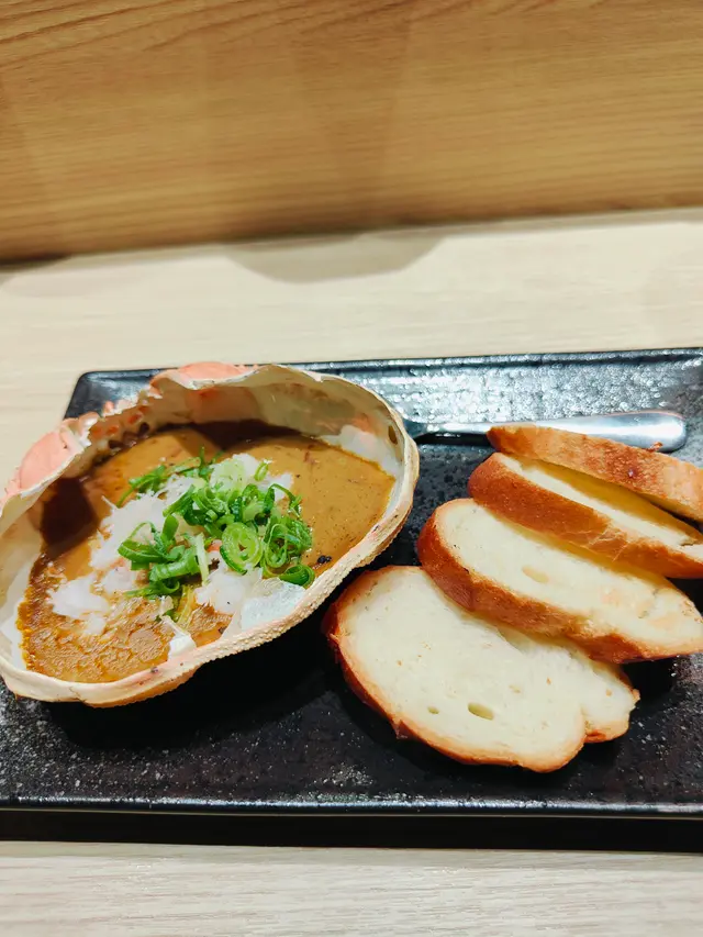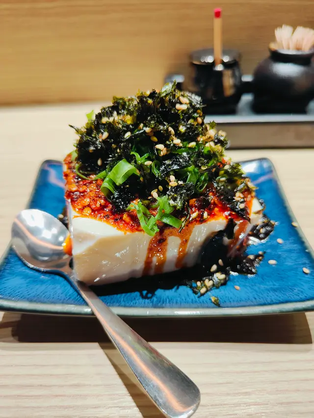 原來呢間居酒屋係正宗日本人開, 行談傾咗幾句老細真係好nice好健談, 一嚟就食一個冰鎮豆腐, 個冰鎮豆腐好嫩滑同啲醬汁芝麻同紫菜係極配, 之後嚟嗰個七味熱刺食落真係好似雞泡魚, 之後嚟咗隻原隻燒雞髀隻雞髀真係好嫩口脆皮嫩滑入口鬆化, 個刺身係厚切三文魚同埋吞拿魚口感一流, 食完個刺身嚟咗一隻魷魚, 入口好嫩滑口感新鮮煙韌, 之後就嚟咗我個極愛蟹肉味噌吐司, 啲蟹膏同蟹肉真係極品好濃鬱嘅蟹味加上吐司鬆化嘅口感食到舐舐脷, 我同我朋友一人一支雞肉串加埋個膽汁同埋雞肉串嘅燒汁好有口感食落好彈牙, 至於個大大隻生蠔加埋檸檬汁新鮮到呢真係形容唔到, 最尾食埋個焦糖布甸真係大滿足飽住個肚走. 依晚張單兩個人都唔使800蚊, 一人三百幾蚊真係超值. 下次去開中環一陣帶埋啲好朋友要book定枱上去擦返餐.