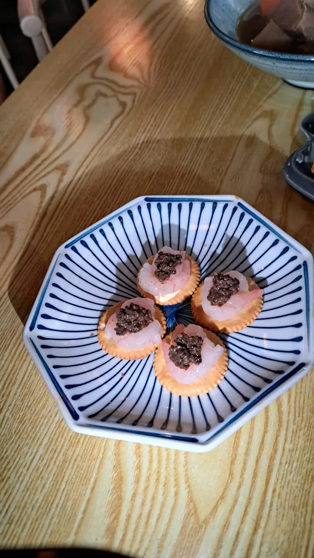 這一餐的亮點是汁煮牛舌和鯖魚定食,黑松露甜蝦可以再點,雞皮餃子啖啖肉。整體價位中等,適合知己相聚,嘆番杯,但仍有改進空間。
