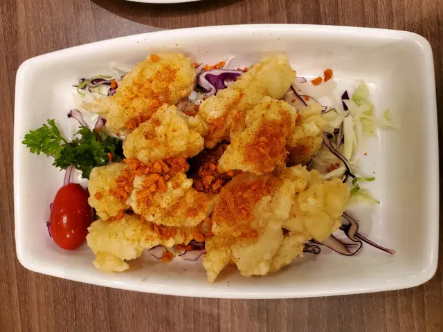 首先點左個避風塘鮮魷,佢係似用花枝炸,香脆唔油,不過避風塘粉可以多D。跟住係豬羅包(一豬兩食),其實即係豬仔包,但一半係煎豬扒,一半係炸吉烈豬扒,多種口感幾豐富,個人比較鍾意煎豬扒味道多D。