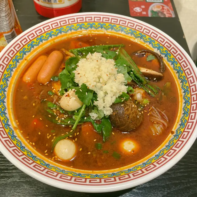呢碗紅噹噹嘅香辣湯真係加班救星🔥!湯底麻香夠喉又唔嗆喉,小辣啱啱好逼到身暖笠笠❄️→🔥。芝士腸爆漿流心🧀、午餐肉煎到脆邊好邪惡,最正係吸湯嘅芋絲同冬菇,索晒辣汁咬落"嗦嗦聲"!鵪鶉蛋滷得入味,土豆粉掛湯能力💯,食完成個人回魂晒⚡️→🔋,能量恢復效率:極速充電!