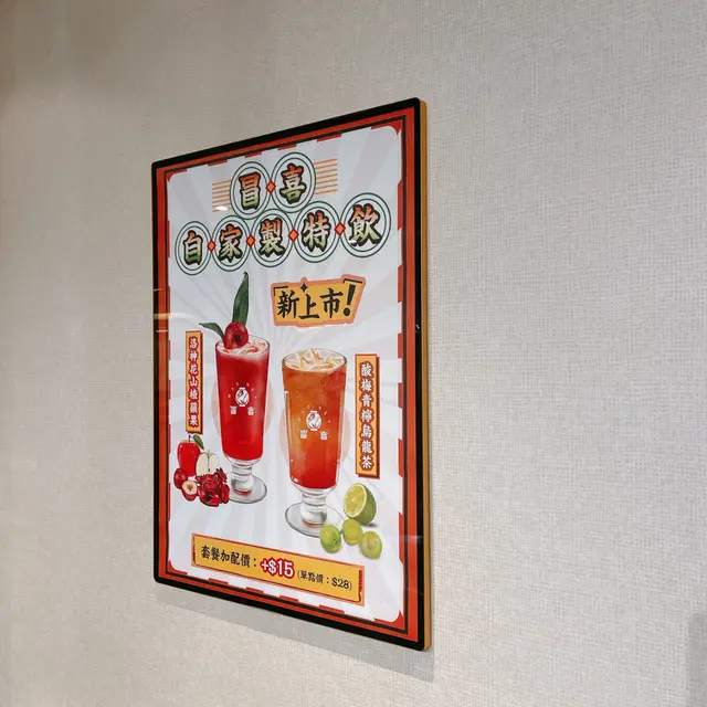 🍽️ 放工同同事衝咗入間新開嘅粉麵店,一入門就覺得好鬆動✨!枱與枱之間隔成個身位咁闊,我哋挨住大玻璃窗位坐,望住牆上啲復古海報同發光圓形logo,成個環境開揚又唔會嘈吵💡。燈光係暖黃色,影食物相唔使狂調光,枱面仲有QR code自助落單,撳兩撳就搞掂晒,啱晒我哋啲加班加到腦閉塞嘅人🤯→🍜。