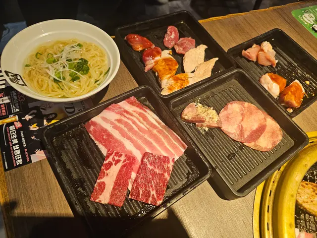 d牛嘅質素都幾靚,肥瘦均勻,燒完仲保持肉質,唔會柴,而其他肉都幾新鮮,唔錯。除咗QR code落單之外,出面仲有大量飲品,沙律,前菜,炸物,蔬菜,甜品等,任攞任食,呢個燒肉放題真係好抵食。