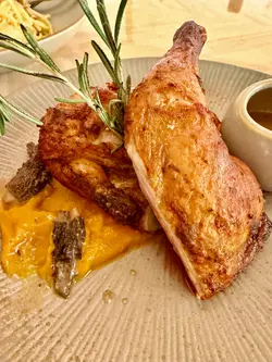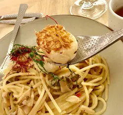 主食時間🍝香煎帶子榮螺貝柱蒜片意粉,好靚,意粉乾身充滿蒜味,好味🙌🏻加埋榮螺貝柱有鮮味,最正係煎帶子,好濃味好正😻燒春雞伴日本南瓜配羊肚菌汁,燒得好香,雞肉嫩滑帶肉汁,皮脆又惹味,好正既燒雞🤤柚子雪葩無花果芭菲,雪葩加無花果芭菲唔太甜,有啲Yogurt feel加啲脆脆,好好味既甜品🍧極高質👍🏻