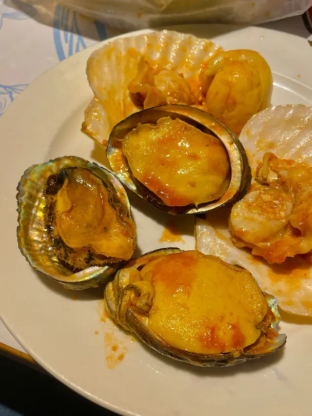 Seafood Platter Combo A (單點$418),扇貝群邊部分口感爽脆,扇貝柱肉質食落帶有一絲絲口感,味道鮮甜,略嫌肉質瘦削;鮑魚仔肉質彈牙,食落好新鮮;小蟶子肉質飽滿、略嫌帶有沙子,食落有鮮味;配菜包括有司華力腸、馬鈴薯、粟米,配以番茄花椒醬汁食用,味道酸辣。
