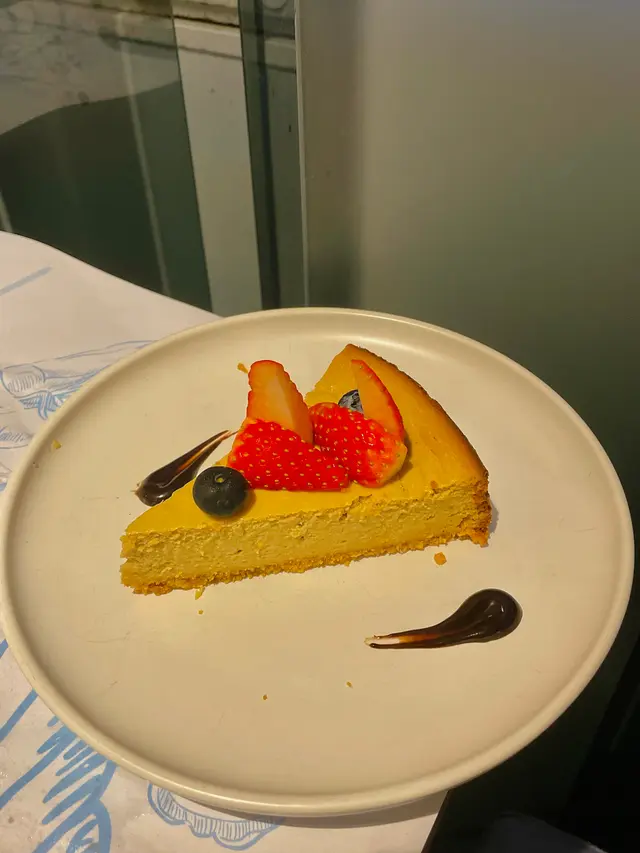Cheesecake (單點$78),表面鋪滿草莓、藍莓,咖啡芝士蛋糕口感綿密,味道濃香,帶有一點Fruity咖啡的果酸味道,配以朱古力醬食用,味道更佳。