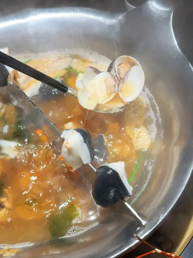 昆布文蛤鰹魚鍋,用昆布煮成,加上新鮮文蛤,湯底鮮甜甘香。