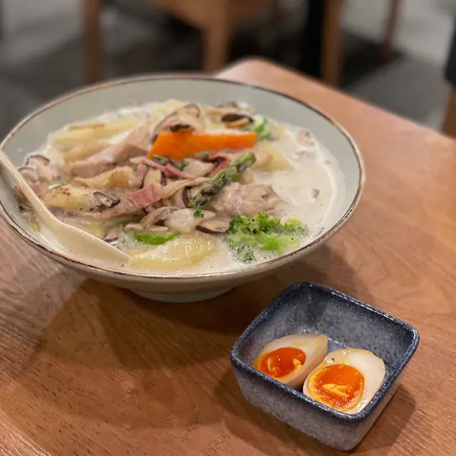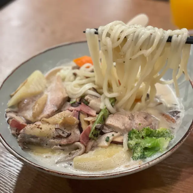 份量超大, 面頭好多雜菌, 配搭烤雞烏冬煙靭彈牙, 忌廉湯底濃郁