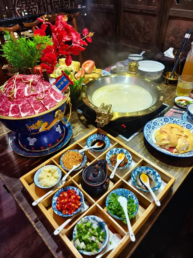 一向覺得只要買到好的食材,就不用外出吃火鍋,但特式火鍋🍲就另計。今次去了北角一間宮廷式火鍋。門口有龍椅及中式宮廷服裝讓客人借用打咭。之前已經有和舊同事來過一次,覺得裝修、餐具特別,食物質素也好好。今次就帶老公來試試。