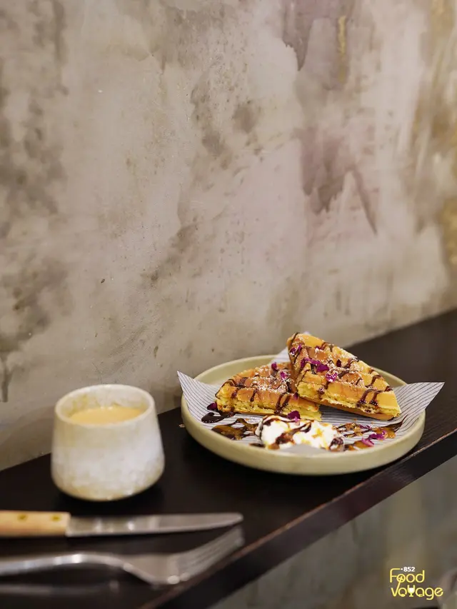 因為不想只喝個咖啡,點了窩夫吃,這裡的窩夫味道多元化又很有特色,最後我選擇了邪惡度滿分的焦糖朱古力窩夫🙈因為是新鮮製作所以都需要一點時間,期間一直聞到牛油香氣❤️窩夫非常酥脆又不會油油的,上面沒有很多花巧裝飾,簡簡單單的cream、朱古力和焦糖醬,這樣已經很好吃。