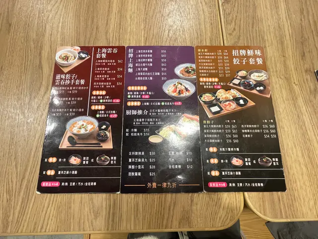 選擇亦十分之多,不同餸嘅上海麵餐、唔同口味嘅煎餃/湯餃、上海雲吞麵餐、排骨菜飯 等