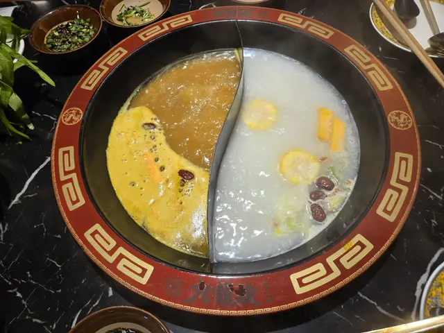 湯底選擇多樣🫕,我哋選了花膠雞拼豬骨鴛鴦鍋,湯味濃郁,湯底夠味且能掛住食材。👍😋🦐🦪🦀