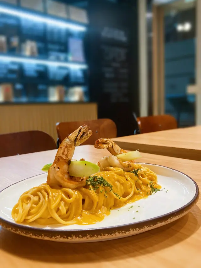 <黑虎蝦蘆筍法式濃汁義大利麵> $168
