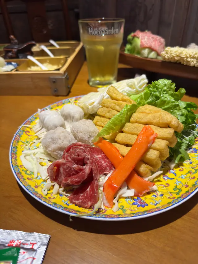 配餐有風琴豆腐、稻庭烏冬、日本蟹柳、唐生菜、和牛芝士一口餃子、手打黃金流心鮮蝦丸和細份本地手切牛肉,手切牛要注意火喉,重牛味,和牛餃子🥟一樣重牛香,有驚喜!