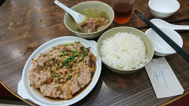 這天來此一試其他午飯,除咗燒味以外的選擇,梅菜肉餅飯是也,唔知點解碗湯的骨帶大量肉喎!肉餅是半肥瘦豬肉,但就比較多根腱位的粒粒, 調味稍稍咸咗D,