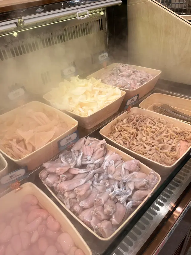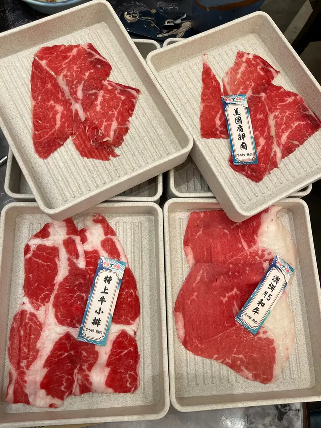 海鮮以外,肉類都係亮點!牛肉薄如蟬翼,花紋均勻,一涮3秒即熟,入口即化,油脂香氣四溢。美國安格斯牛肩胛肉油花分佈平均,涮完表面微焦內裡粉嫩。豬梅頭肉同伊比利亞黑毛豬頸肉都係即切即上,肥瘦相間超juicy。