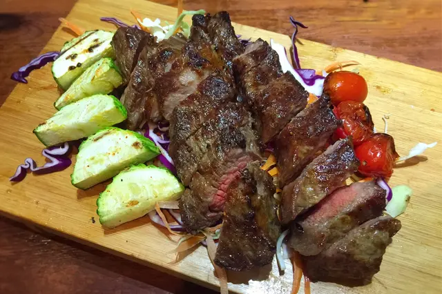 牛小排外層燒至微微焦香,肉質較韌且肉味薄弱,油香四溢,不過脂肪比例太高充斥不少肥膏。