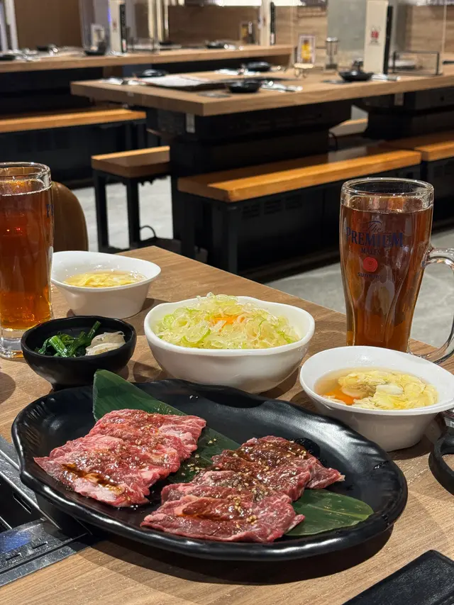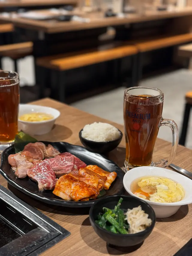 燒肉份量大,烏龍茶又大杯,慢慢傾慢慢燒超開心❤️!