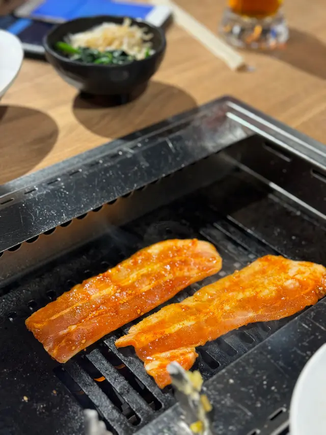 當中我最鍾意嘅係豬五花,因為鐵板夠熱,所以燒出嚟又脆又香!