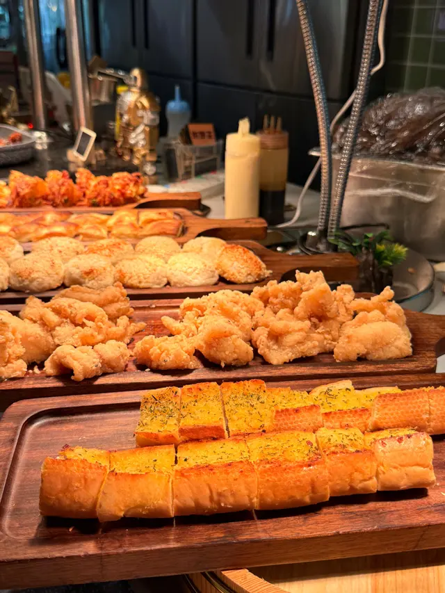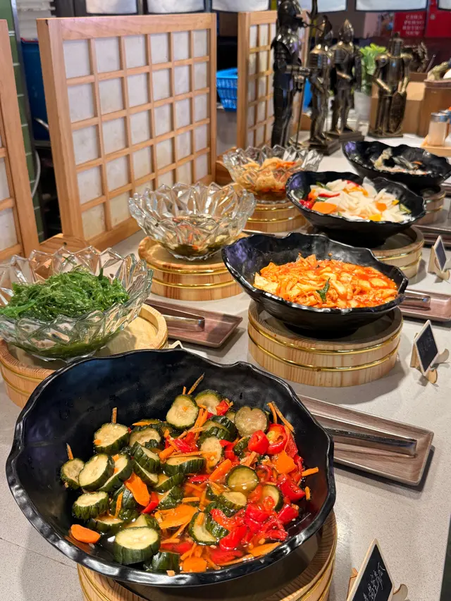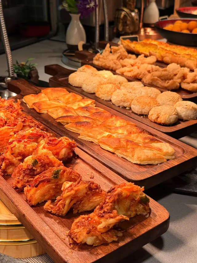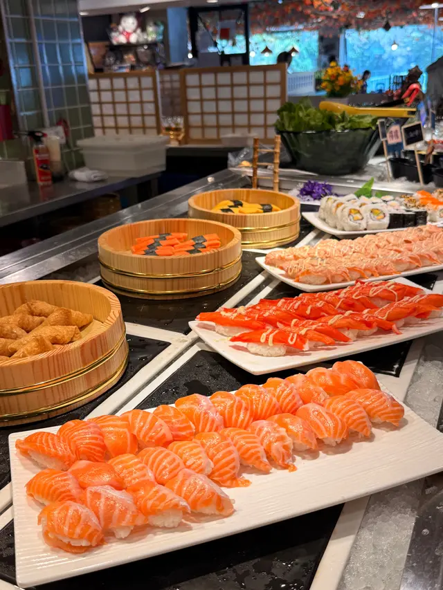 🥗自助區有各款沙律、熱盤、蒸點心燒賣粉果等
