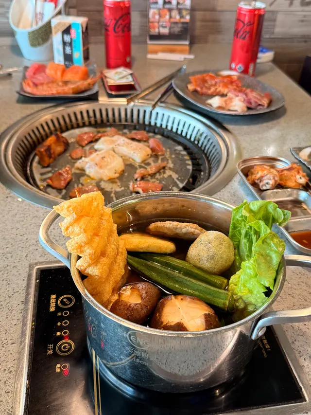 我地每款肉都夾少少去燒烤,肉類調味唔錯,火鍋嗰邊就主力淥菜,平衡下味蕾,刺身牡丹蝦同三文魚都好肥美。午市都幾多人,尤其學生哥,原來學生有優惠。職員話雞煲任飲任食都好抵$98食3個鐘,下次挑戰~