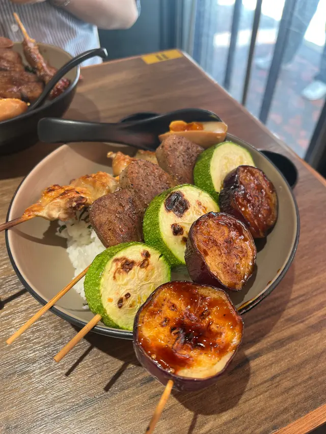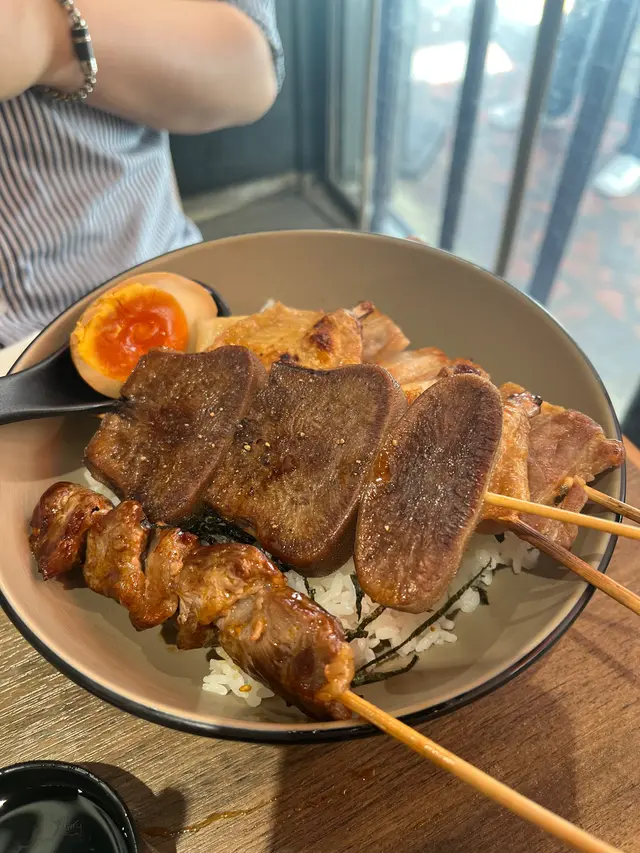 丼飯上面有飯素,而且飯嘅份量唔少,絕對足夠一個成年男仔嘅份量,如果食唔晒可以少飯。重頭戲嚟啦 - 串燒🍢真係串串都好大串😍完全唔孤寒!雞翼雖然燒過,但係都仲係好多汁,唔會燒到好乾身😋翠肉瓜同茄子都好多汁,大讚🤩最重點係佢個厚切牛舌,真係超厚,啖啖肉,而且唔騷,超好食😋