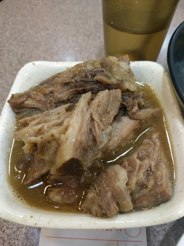 小弟只是一介文棍,並不是攝影師,原諒我影相影得咁求其,$48有牛腩飯有湯連熱飲,份量亦適中,價錢亦算公道。紫菜湯味道一般貨色,但老闆都唔吝嗇紫菜既份量,誠意搭救。牛腩絕對係肥瘦適中,牛味同腩汁調教方面,廚子做出了一個絕佳既平衡,一舊半肥瘦牛腩入面埋藏住深不可測刀功,再加少少招牌辣椒油,食完之後係唔會搵得番呢種咁"Balance"既味道。
