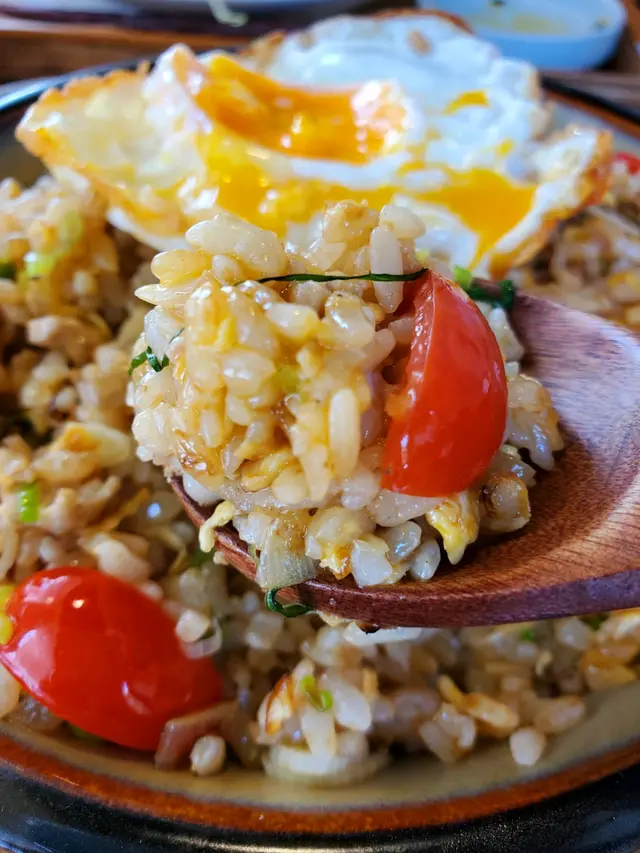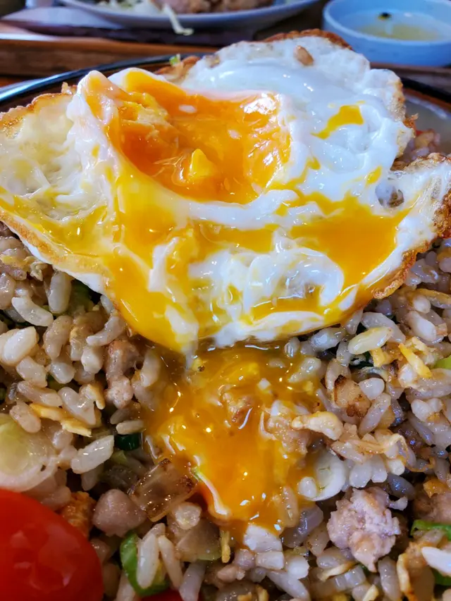 那半熟蛋汁配與香葉蕃茄肉碎炒飯真的太配了吧~