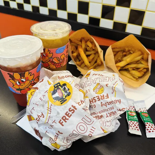本身係想飲廢水,依家$30升級就可以試到兩杯特飲仲有薯條🍟,好抵食啊!特飲都有好多款式揀,我哋揀呢兩杯特飲好有咬口,漢堡加特飲,清涼又解渴,小Sun媽好滿意🫶今次真係食包食飽!